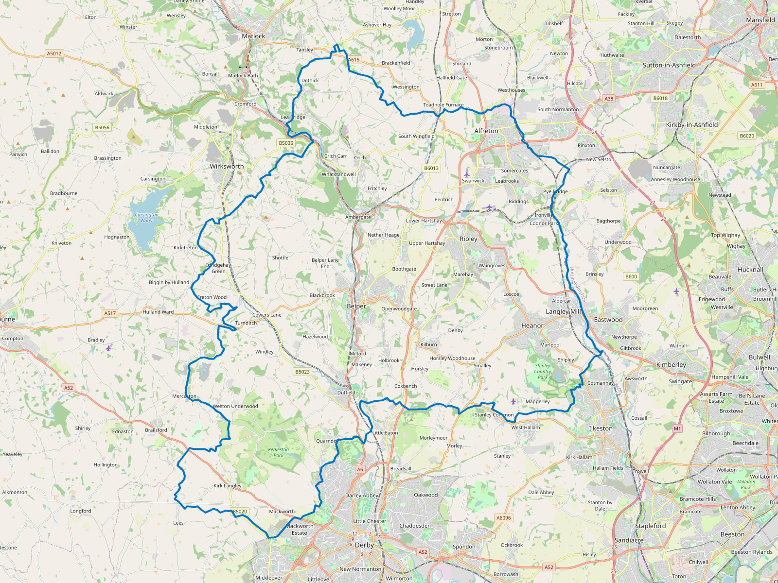 Low-value areas include Alfreton, Heanor and Ripley — the borough's three largest towns — along with Ironville, Riddings, Somercotes, Swanwick, Aldercar, Langley Mill, Horsley, Mapperley, Shipley, Smalley and Codnor.