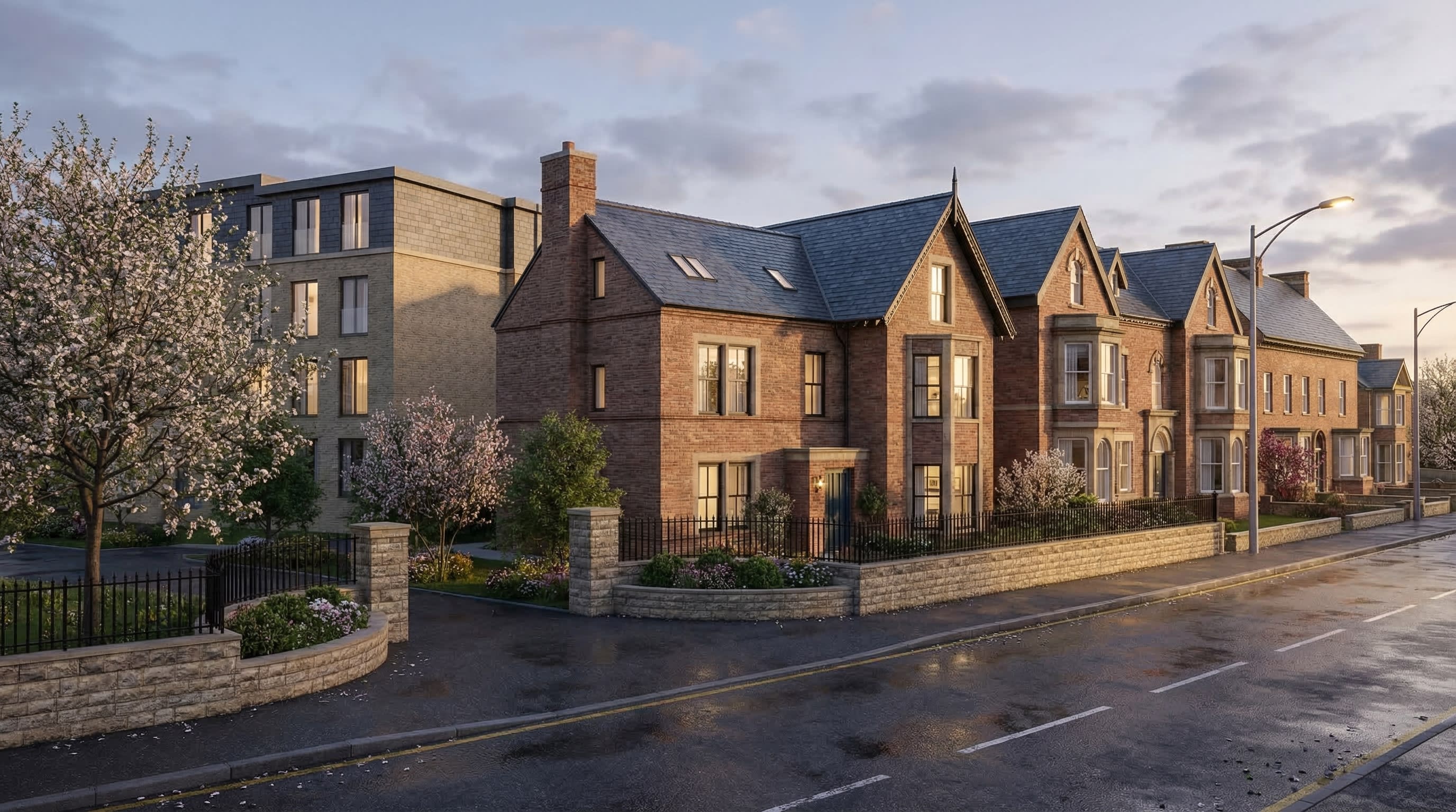 Our client has owned this site since 2019. In that time, they've secured planning permissions for the conversion of Wilderslowe House — a Grade II listed Georgian villa — into fourteen apartments, and the adjacent Osmaston Villas into twenty more. The Osmaston Villas conversion is now approaching completion.
