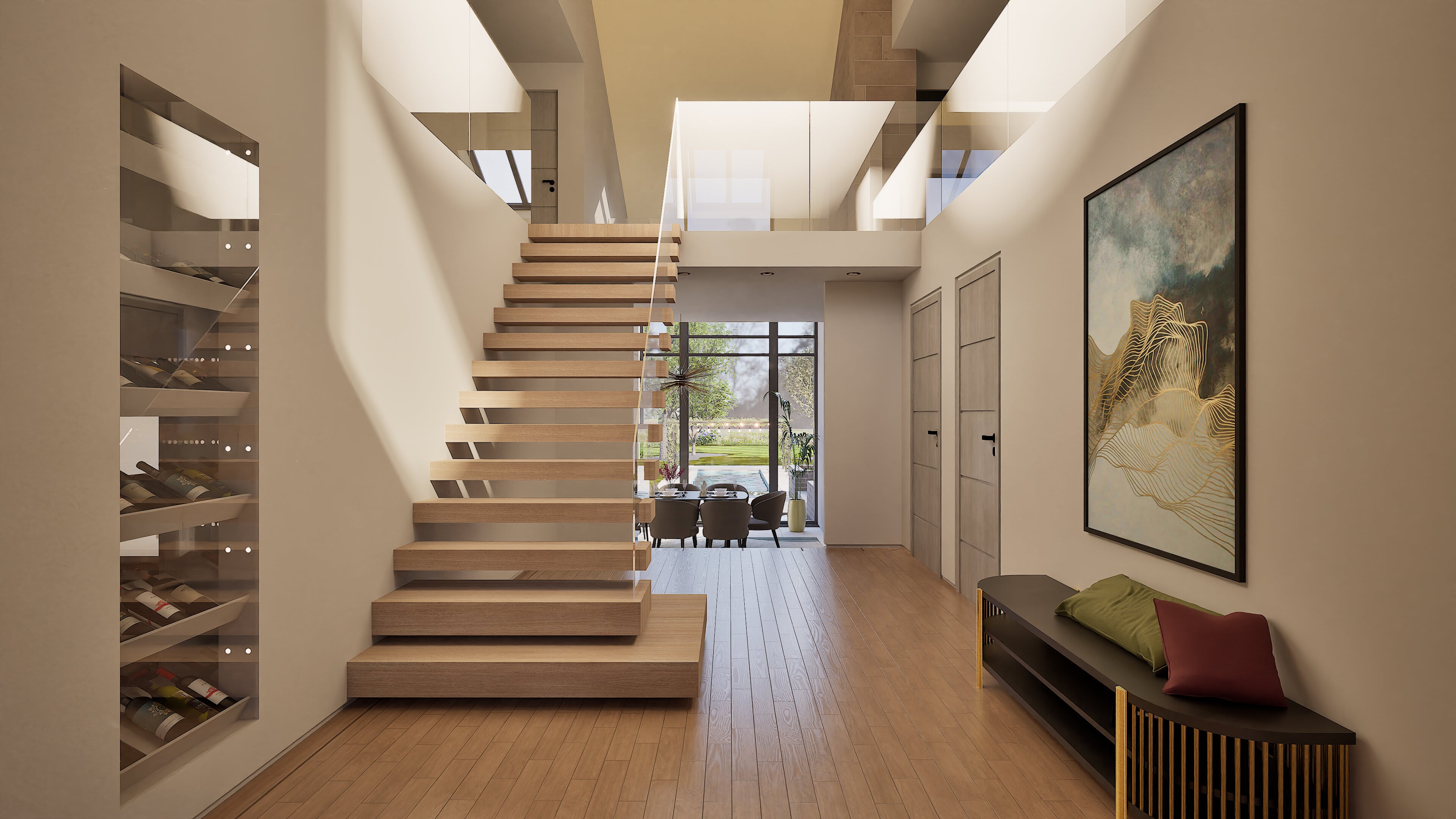 The ground floor flows from a dedicated home office through to an open-plan kitchen-living-dining space that spills onto tiered garden terraces. Add a formal lounge for quieter moments, a home gym for morning workouts, and a mudroom that handles family life, and you've got a house that adapts to how people really live.