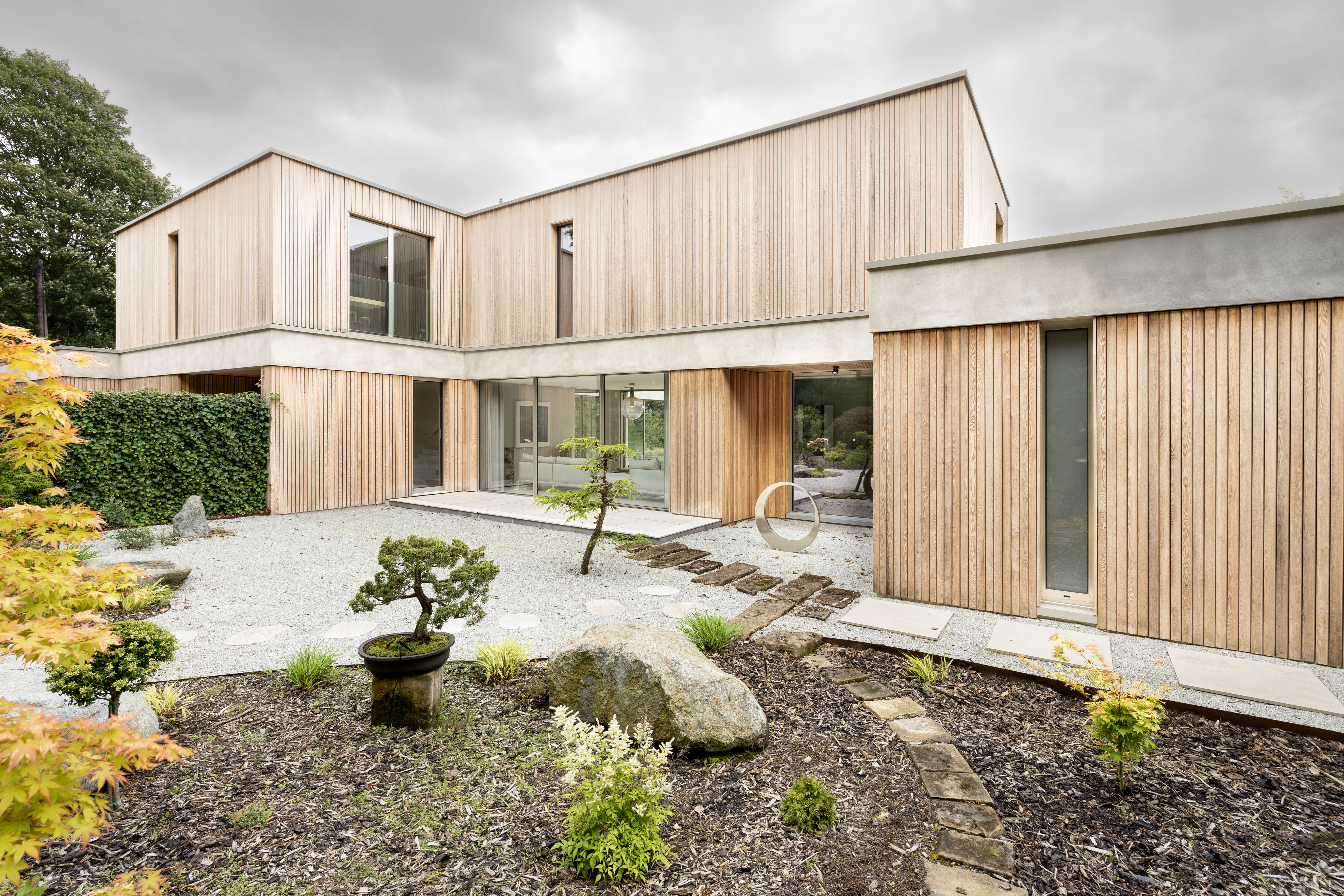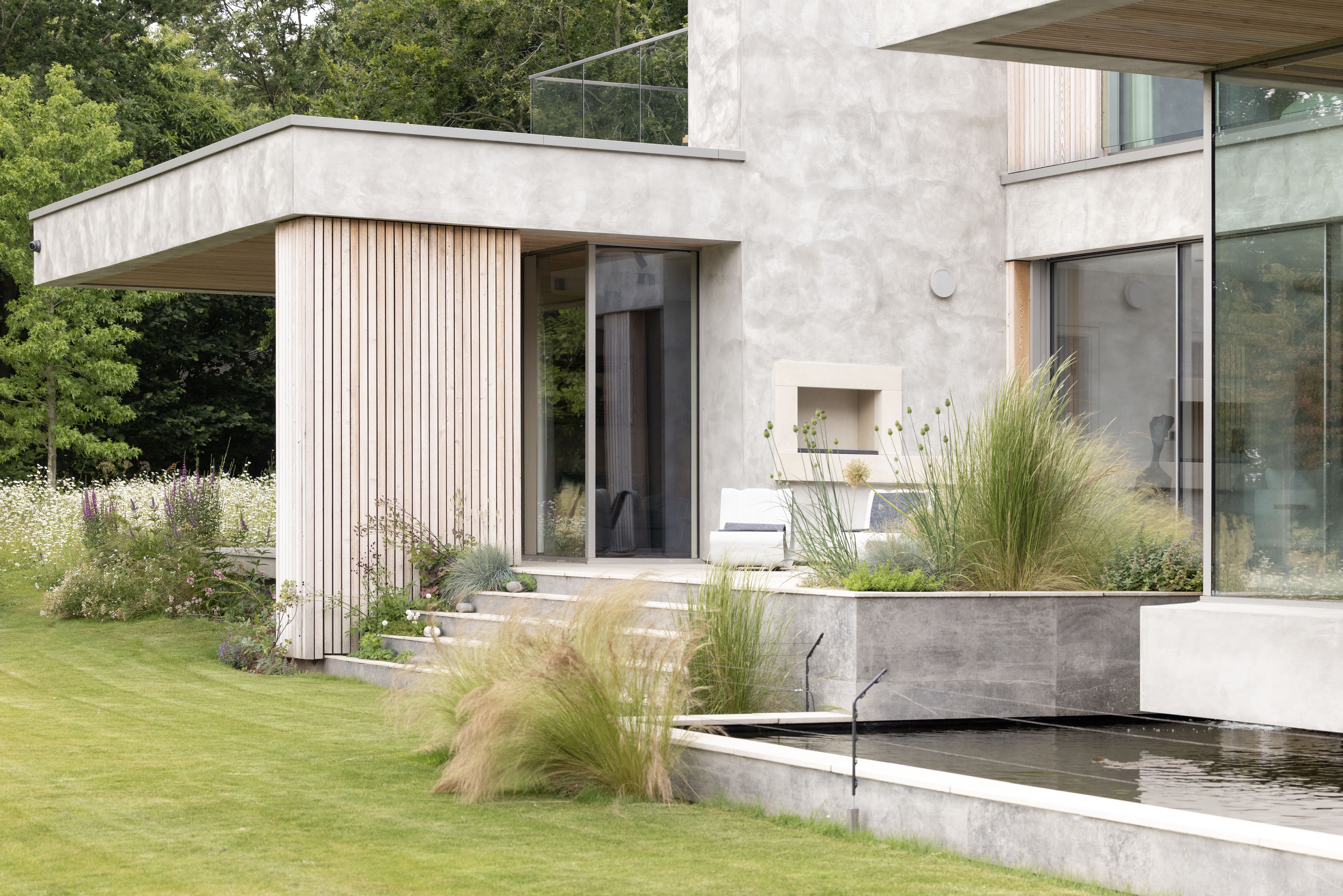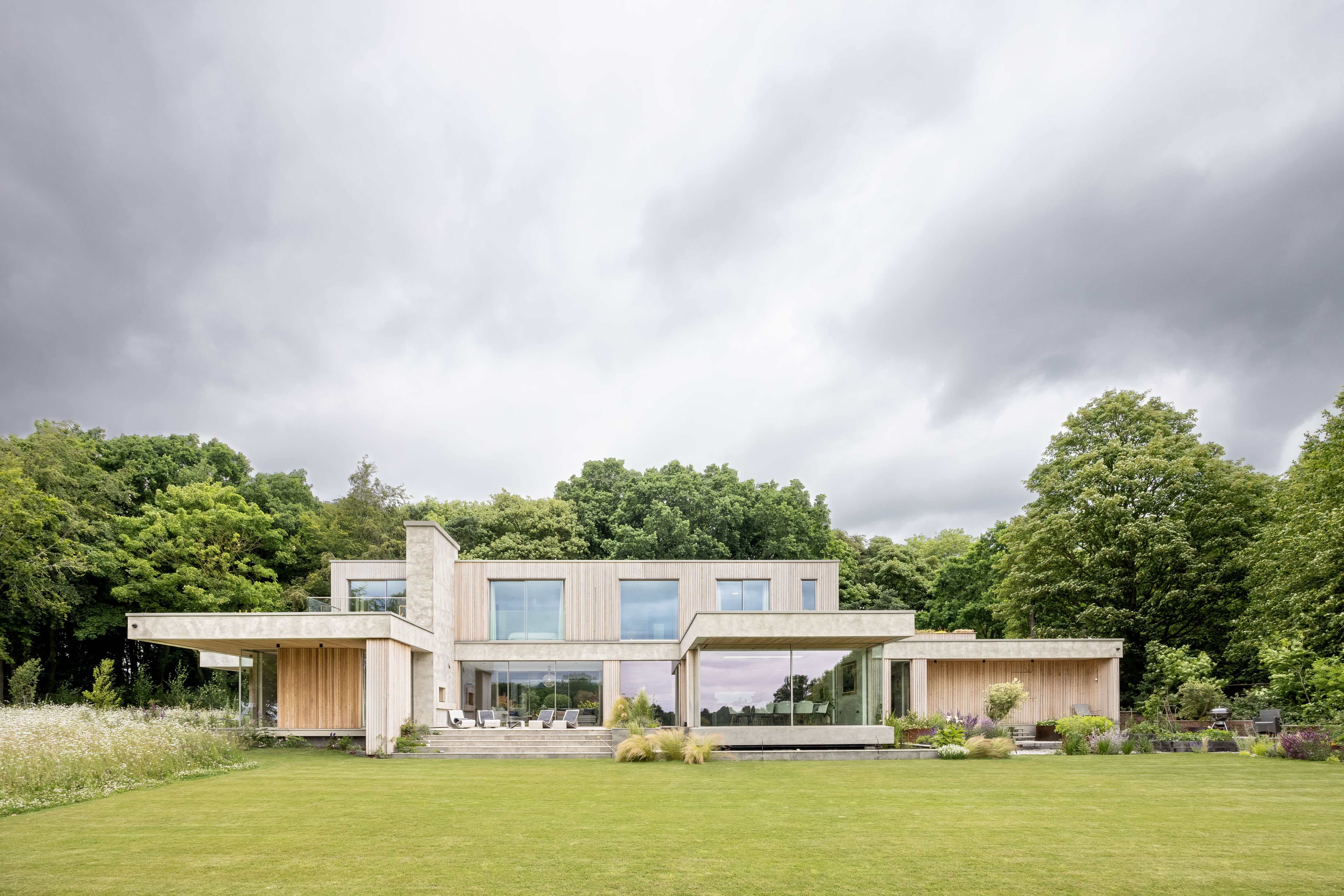 The material palette is deliberately restrained: concrete, brushed steel, and vertical larch cladding that weathers more gracefully than most of us age. No skirting boards, no architraves—just clean lines and mitred edges that reward closer inspection (and make visiting tradespeople slightly nervous about their standards).
